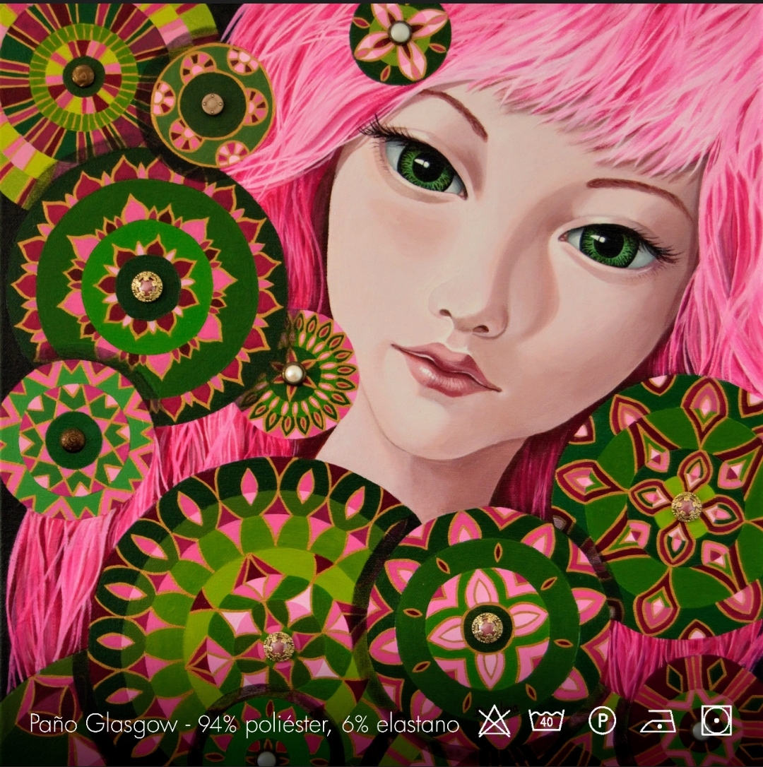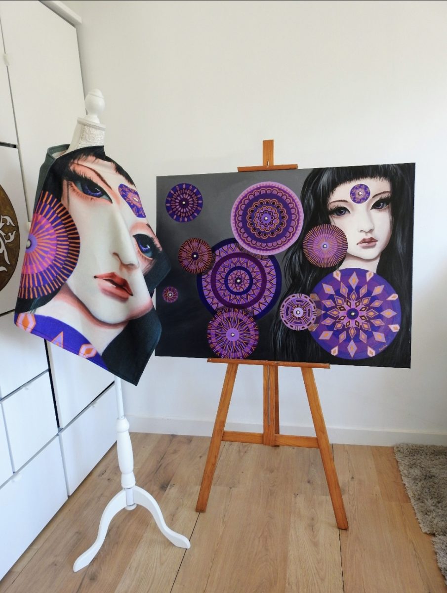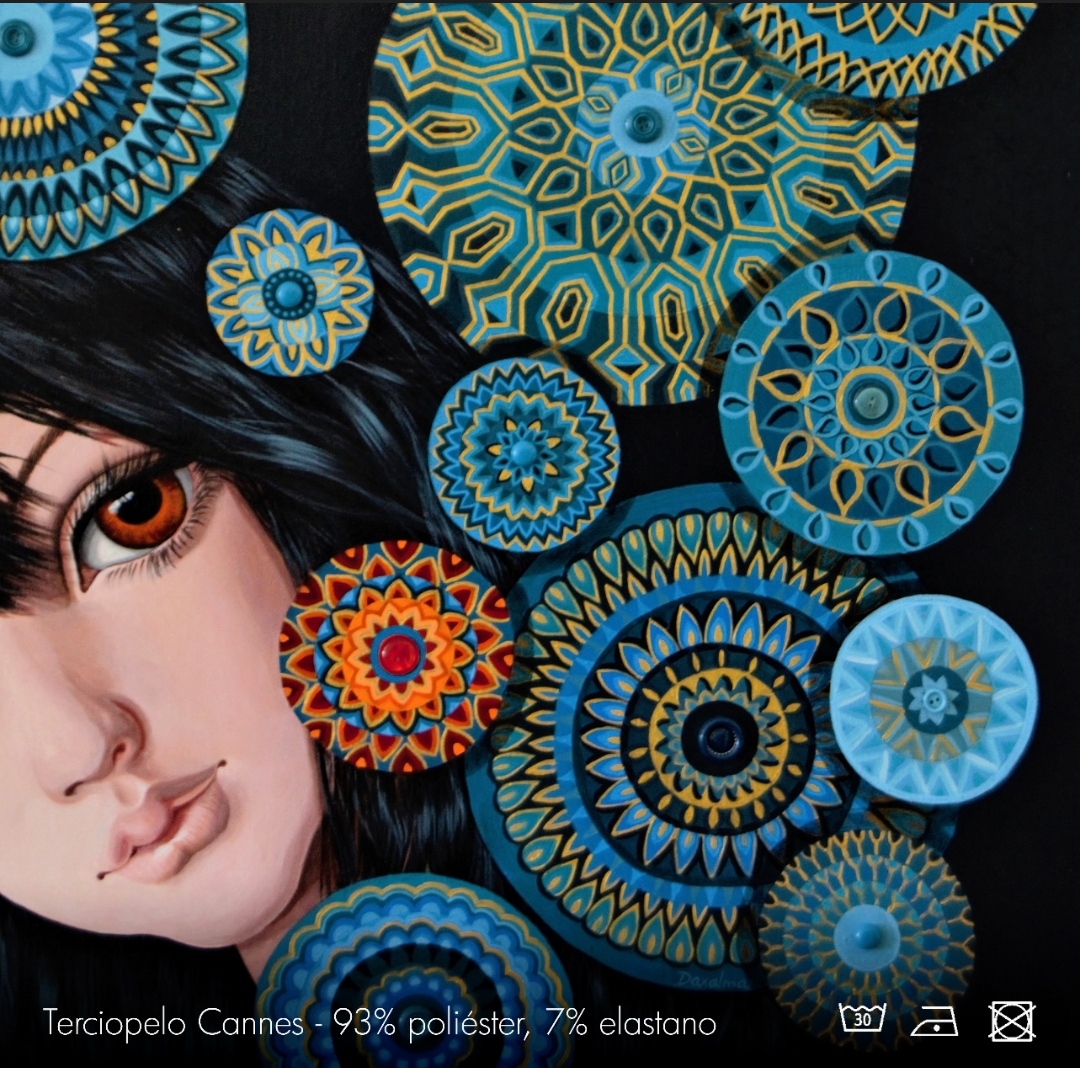 He querido representar todo el maltrato y el dolor como mujer maltratada inspirada en mi hija, la infancia, como muñecas rotas, medio vivas , medio inertes, la eterna dualidad de nuestro mundo y en todos los continentes . Los botones son recuerdo de infancia como hija de modista, son el nexo de union de la dualidad. Los mandalas son figuras geométricas meditativas, con un poder transmutador energético junto con el poder de los números y los colores, son los encargados de hacer la magia transmutadora y transformadora del dolor en paz y armonía. El agua de mar es vida, un cuadro está sin ella.